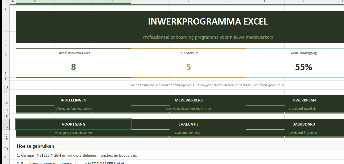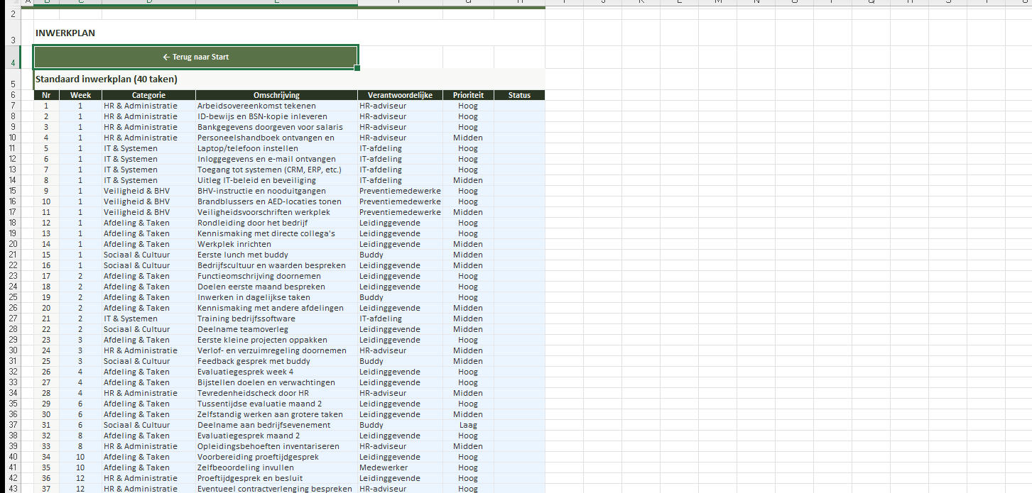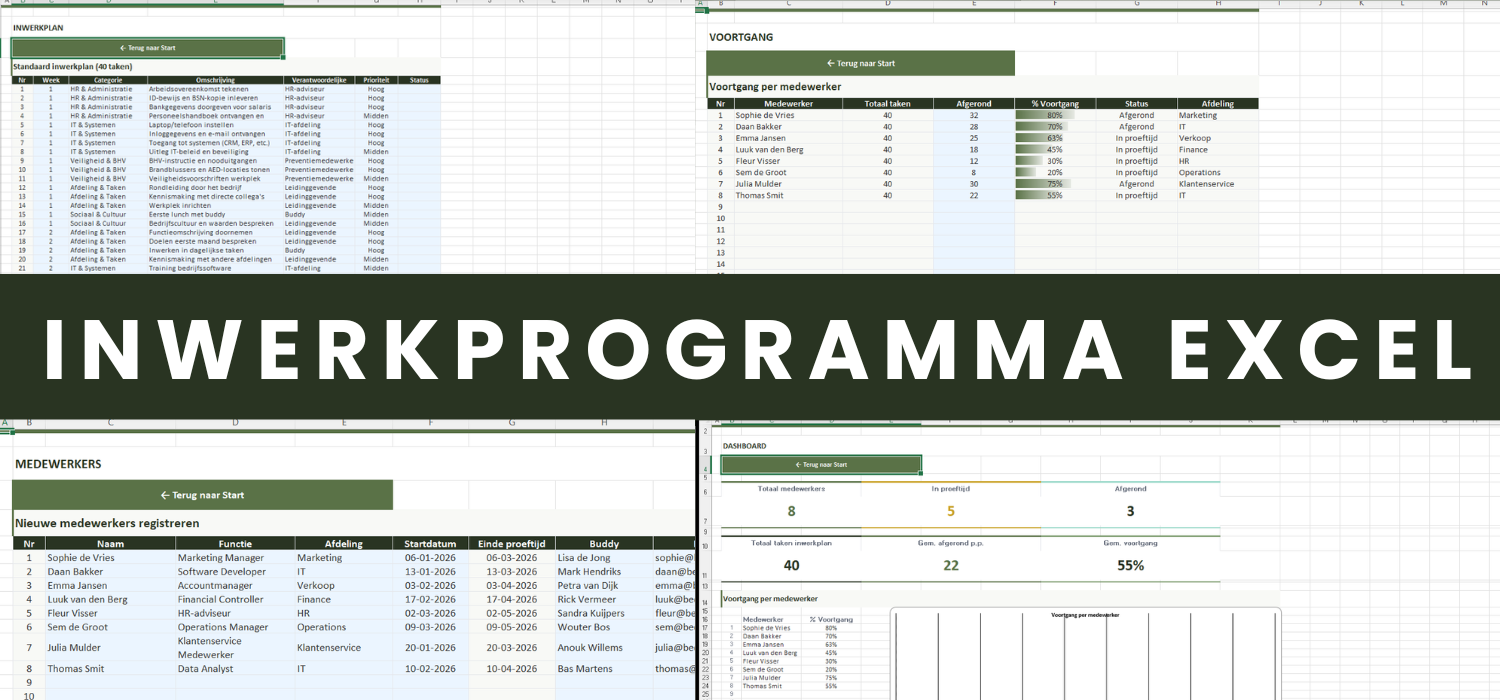 Professioneel inwerkprogramma in Excel voor nieuwe medewerkers