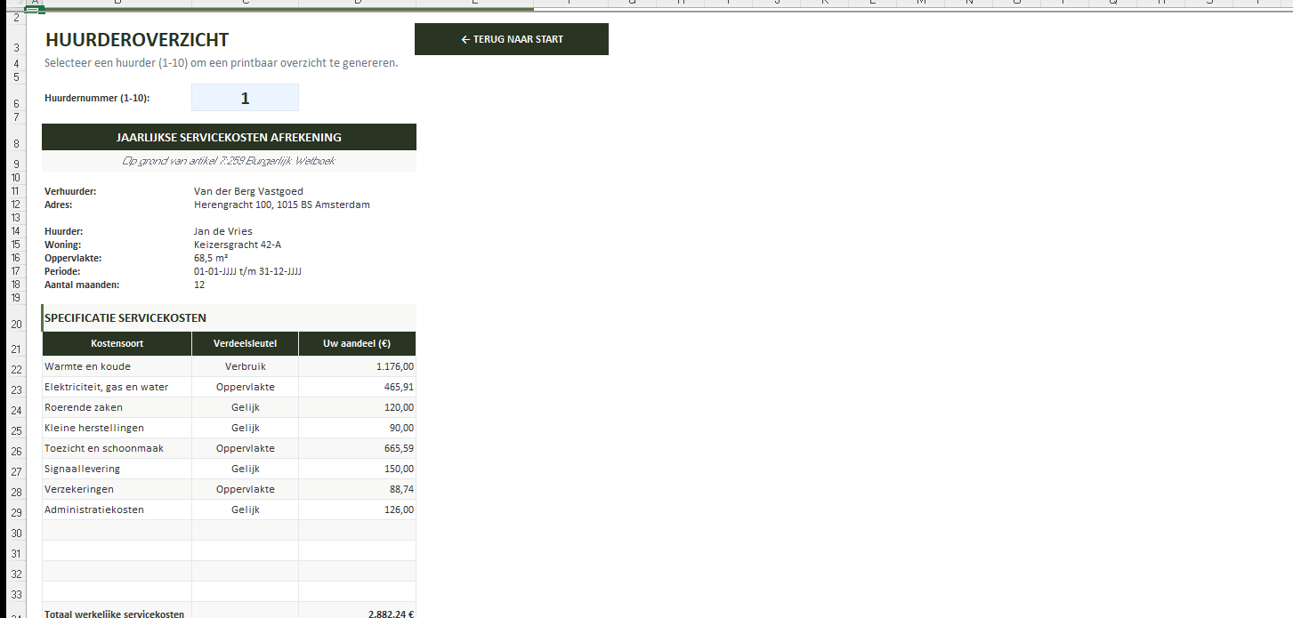 Servicekosten Afrekening Excel — Professionele jaarafrekening voor verhuurders
