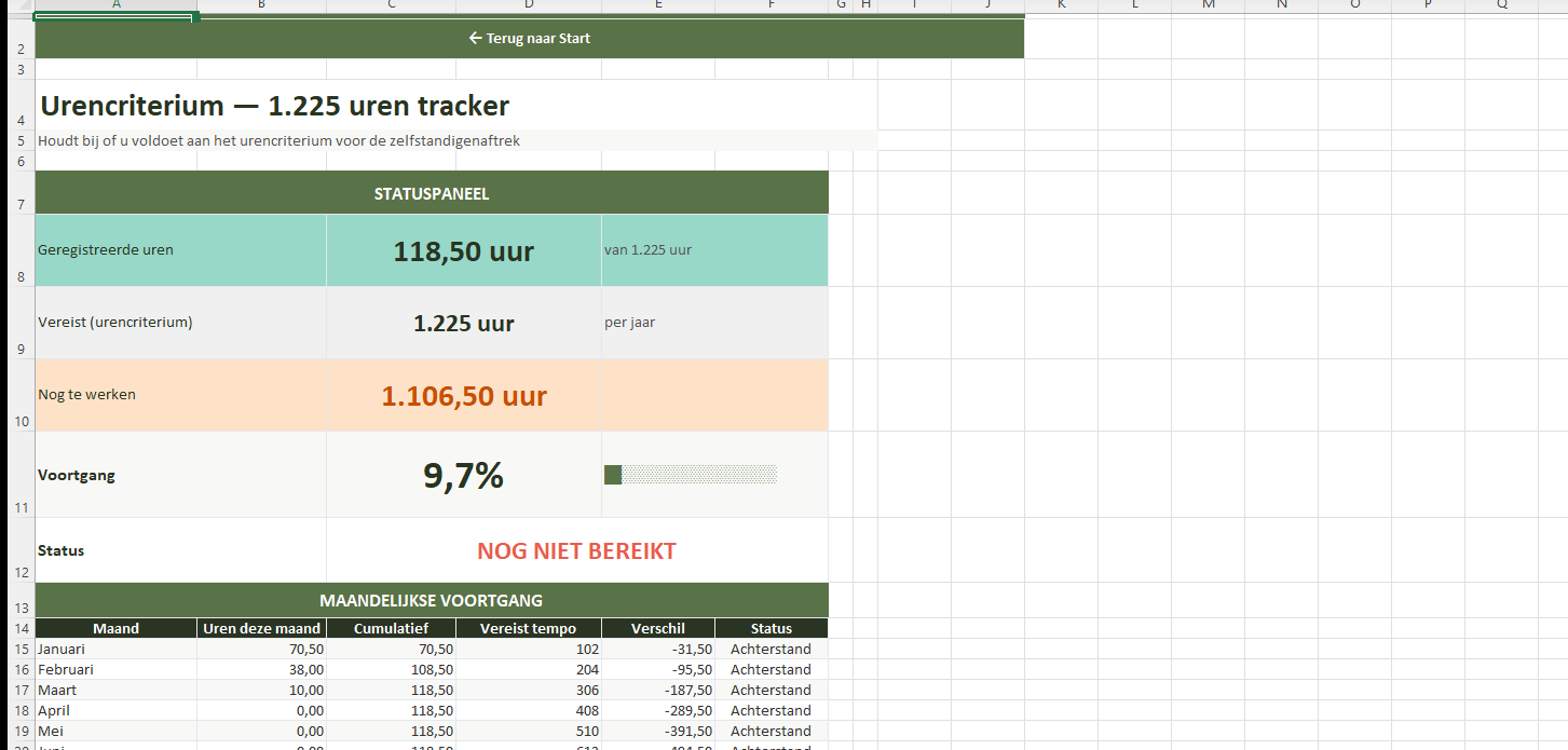 Urencriterium-tracker: volg uw voortgang richting 1.225 uren per jaar