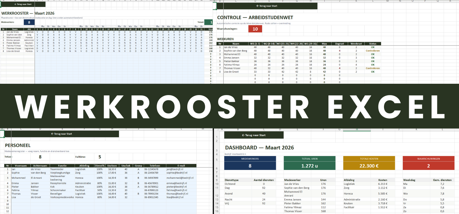 Werkrooster Excel — personeelsplanning met Arbeidstijdenwet-controle